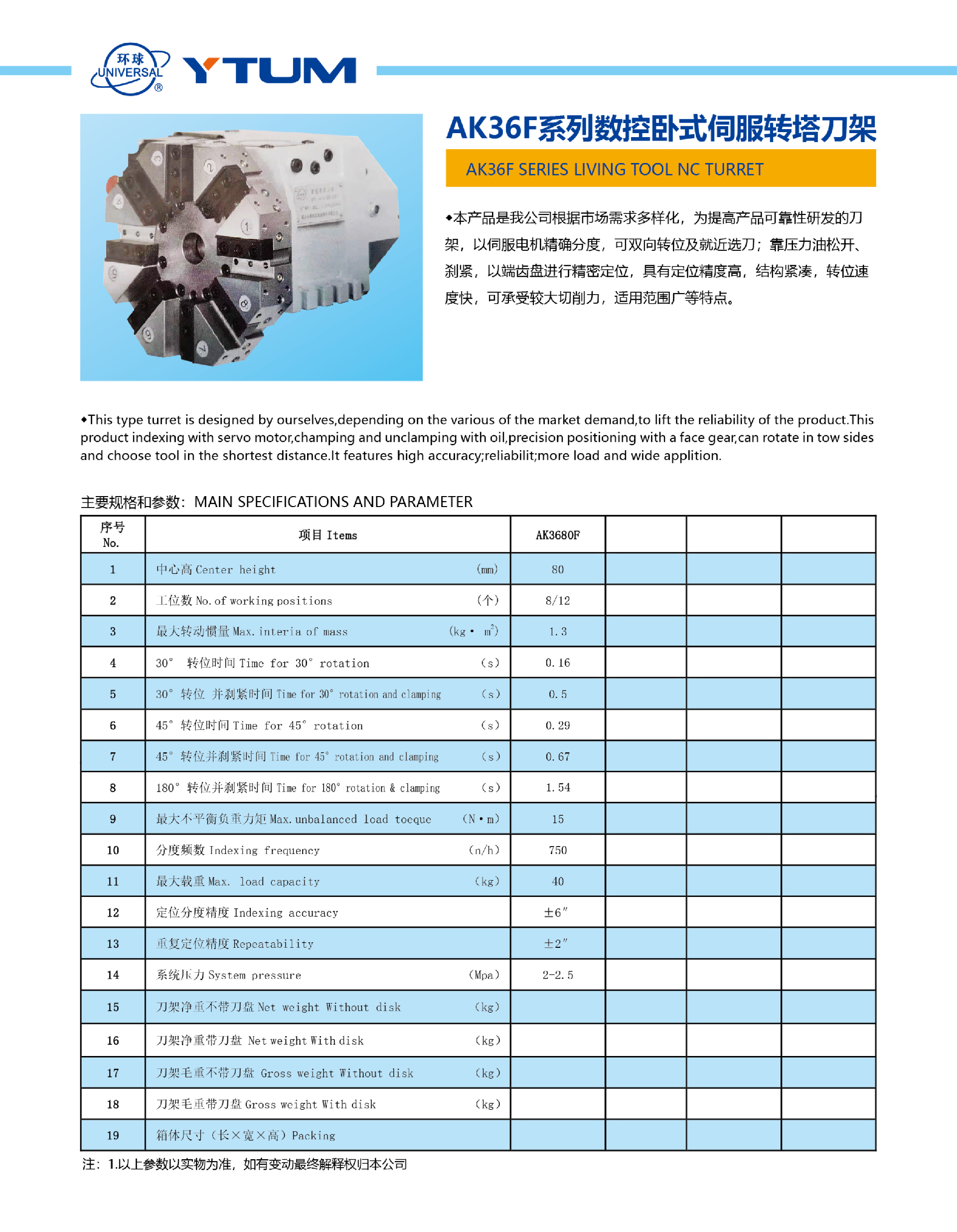 AK36F系列數(shù)控臥式伺服轉(zhuǎn)塔刀架