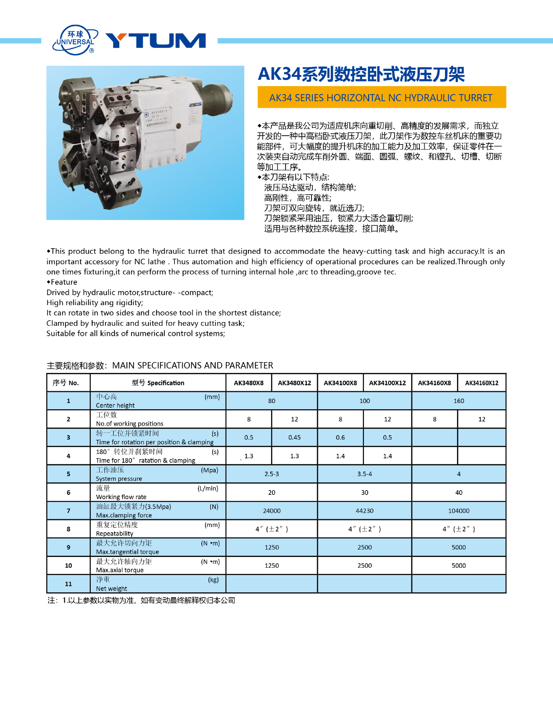 AK34系列數(shù)控臥式液壓刀架
